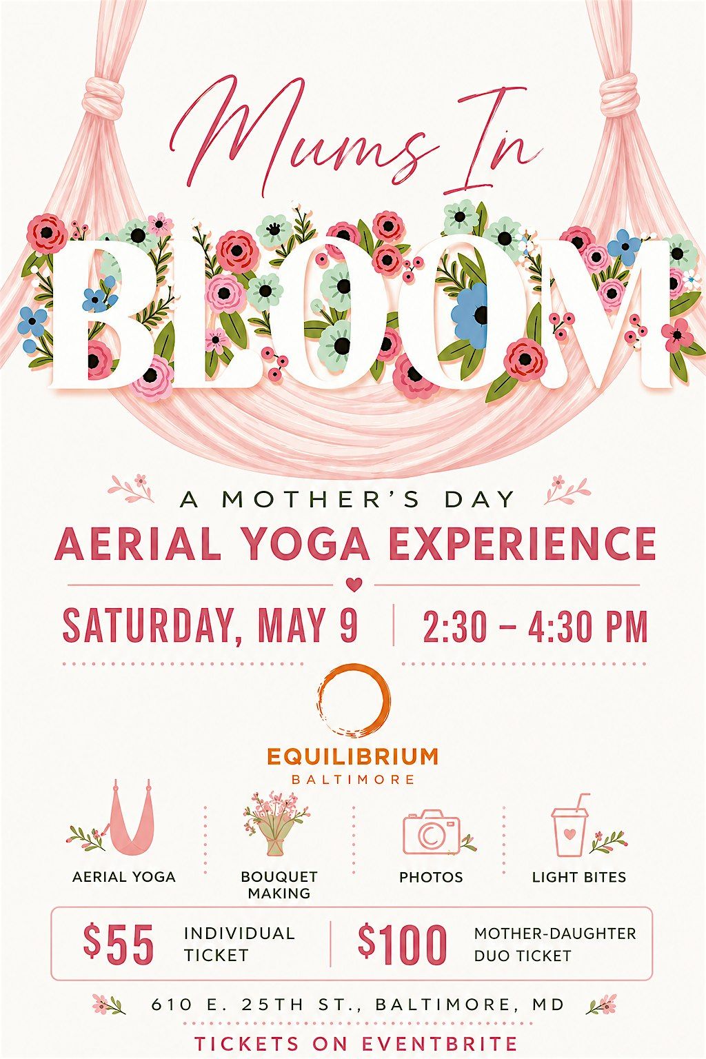 Mums in Bloom: A Mother’s Day Aerial Yoga Special