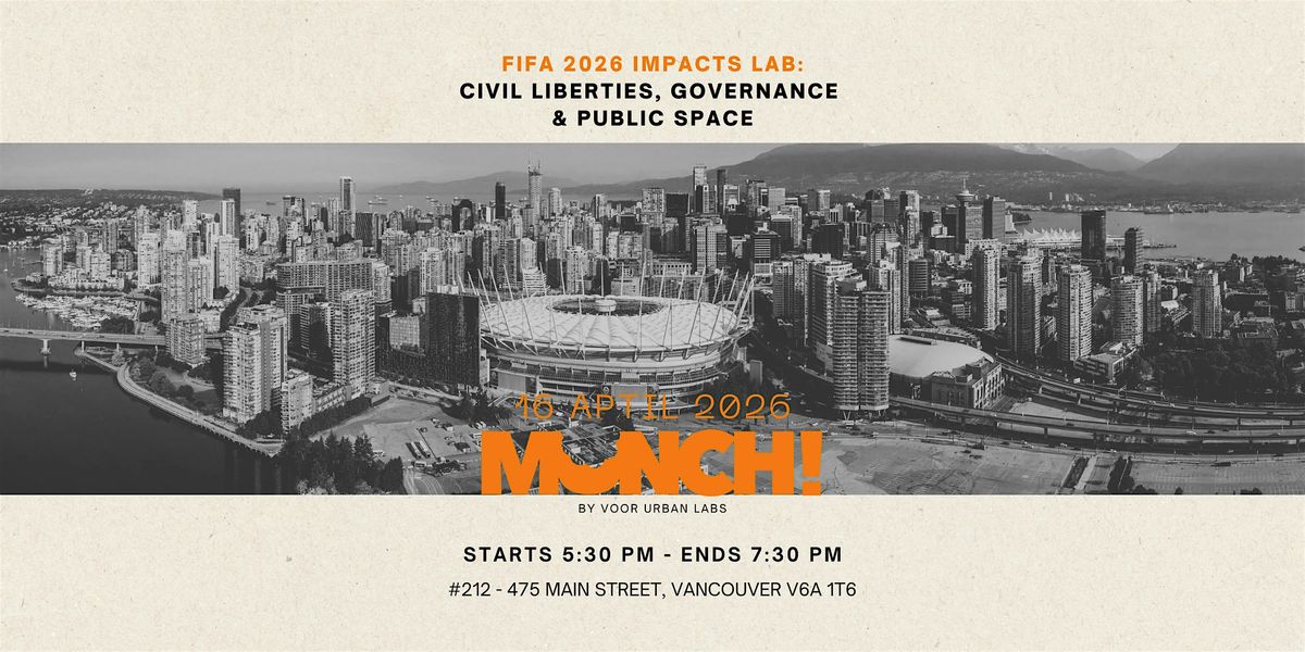 Voor Urban Labs invites you to a new season of Munch focused on improving the City of Vancouver’s Sustainability and Human Rights Strategy for the 2026 FIFA World Cup. Let’s hear from subject experts and participate in the discussion as we collaborate to assess how important issues in Vancouver are included or excluded from the City’s planning for the World Cup. These sessions serve as a collaborative laboratory where we move beyond mega event promises to establish the Community Playbook—a set of policy standards and accountability metrics designed to deliver benefits and accountability for the $700M municipal investment.