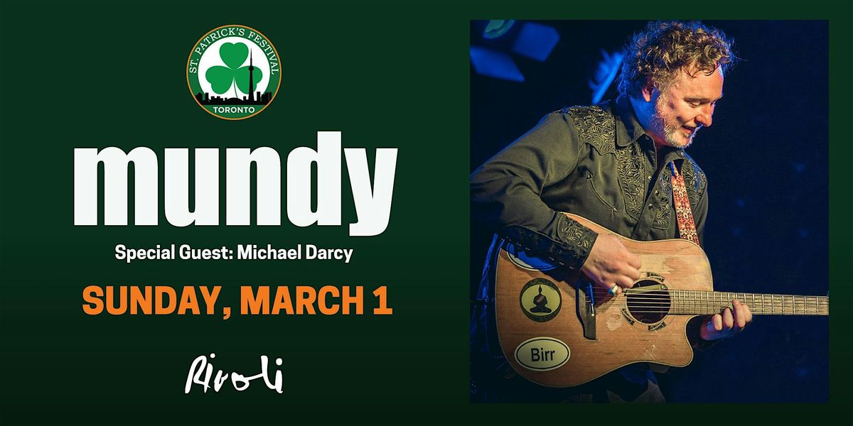 Come kick-off Irish Heritage Month with Mundy! He'll be playing Galway Girl, July, Mexico and all your other favourite songs.