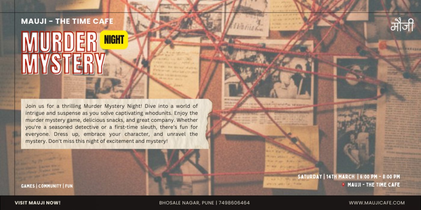 Get ready for an evening of suspense, strategy, and surprises at Murder Mystery Night at Mauji β The Time Cafe, Pune.