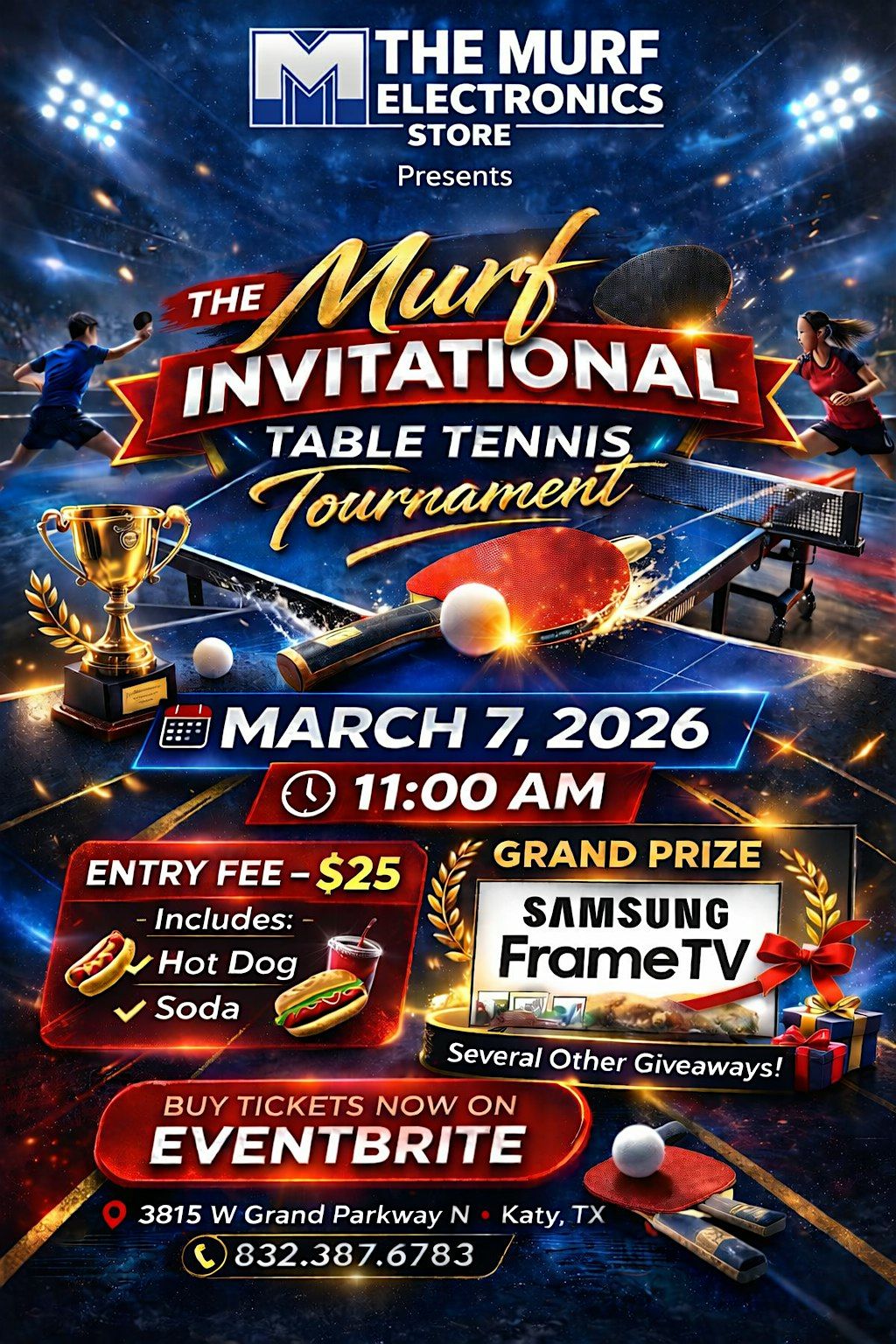 This will be a double elimination tournament for male/female players. The grand prize will be a FrameTV valued at over $1,000 and there will be other giveaways. tournament will be played on multiple tables at our tetail location and your $25 enntry fee includes free hot dogs/nachos and soda. BYOB as desired!