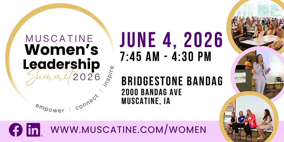 Featured presenters include Gage Huston (Muscatine Power & Water), Jen Craft (UnityPoint Health) and Brooke Fitzgerald (The Restoration Project). The "Cross Generational Voices of Women" panel will feature Meghan Hartman (HNI Corporation), Chelsea Harms (AFC Industries and Cheers & Graze with Charm), Rachel Reed (Muscatine Power & Water), Christine Cole (Stanley Consultants) and Michelle Almandinger (Kent Corporation).