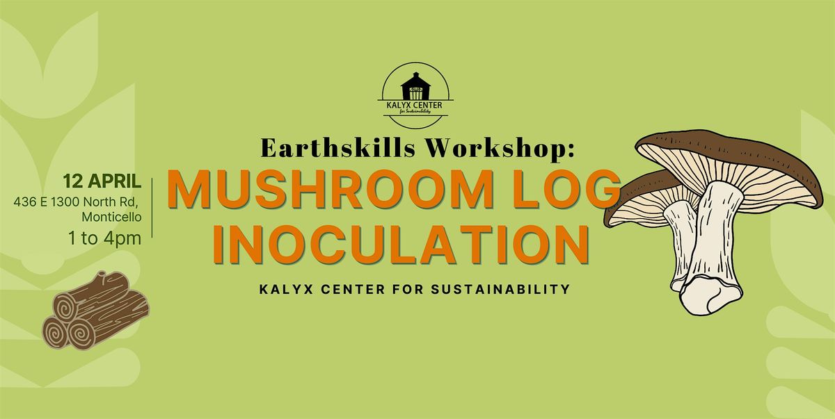 Join Kalyx Center for Sustainability for a hands-on mushroom log workshop on Saturday, April 12th at the Kalyx Center at 436 E 1300 North Rd. in Monticello, IL.