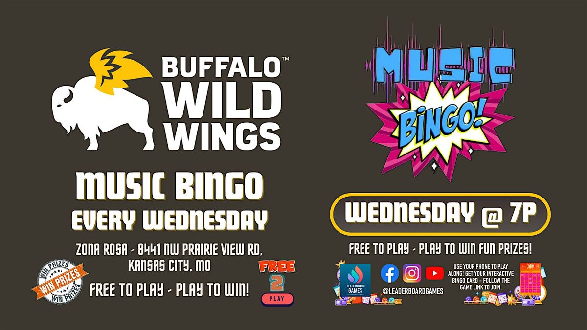 Buffalo Wild Wings - Zona Rosa Kansas City MO hosts Music BINGO Game Night on Wednesdays at 7p - Join us for great music, food, fun and PRIZES! FREE to Play - have to Play to WIN!