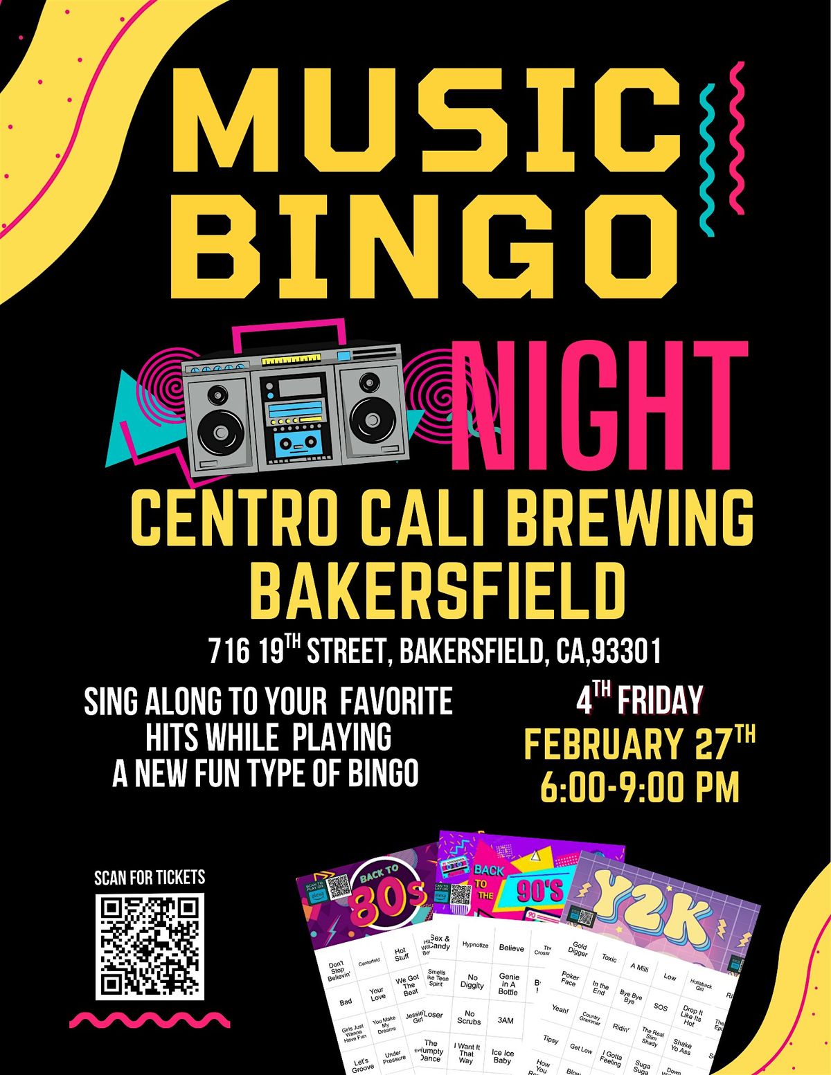 Hey Music Bingoers! Music Bingo Night is finally coming to Bakersfield on a Friday! 4th Friday February 27th. We’ll be at Centro Cali Brewing.