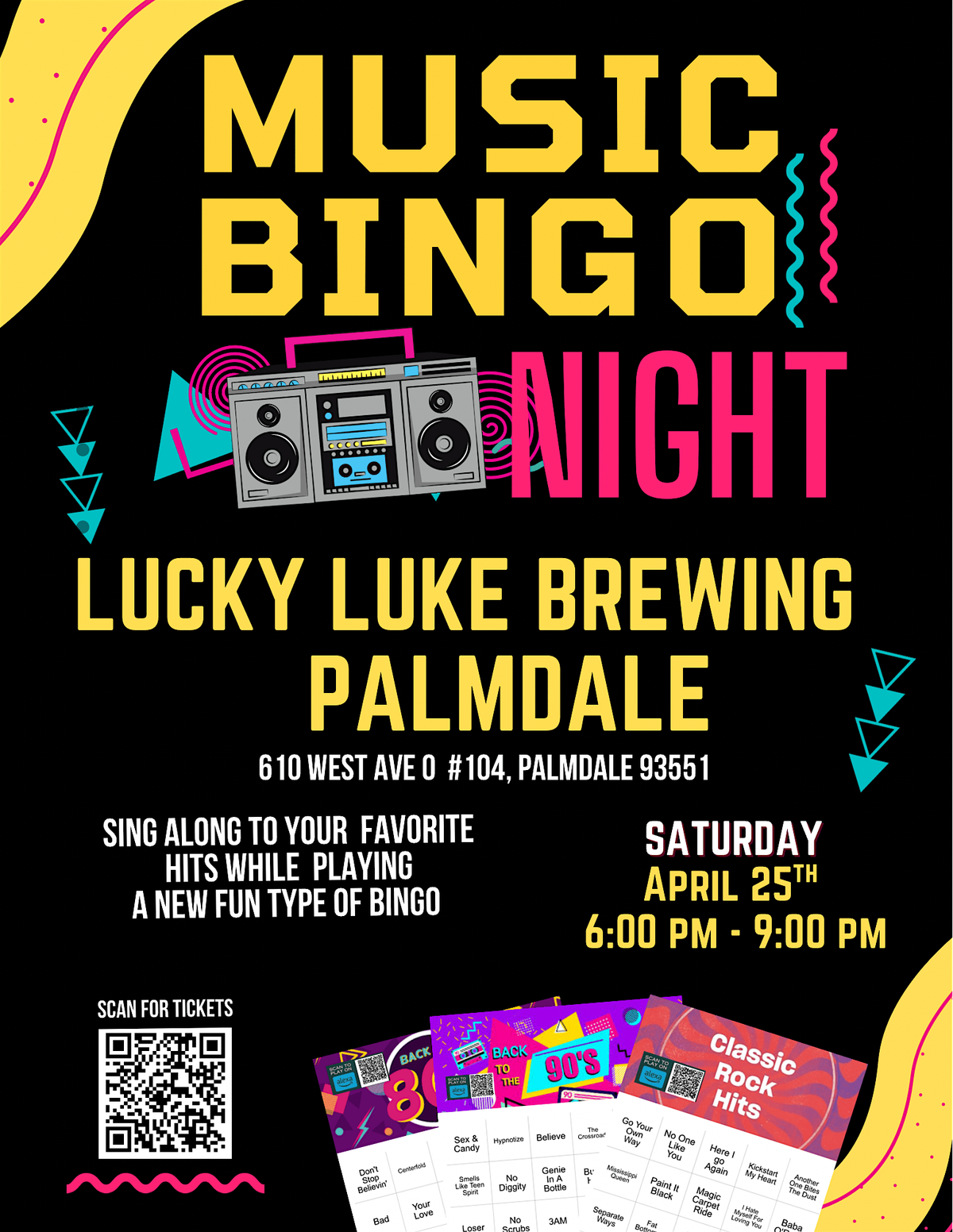 Music Bingo Night Returns to Palmdale on Saturday April 25th . The fun starts at 6 Pm.