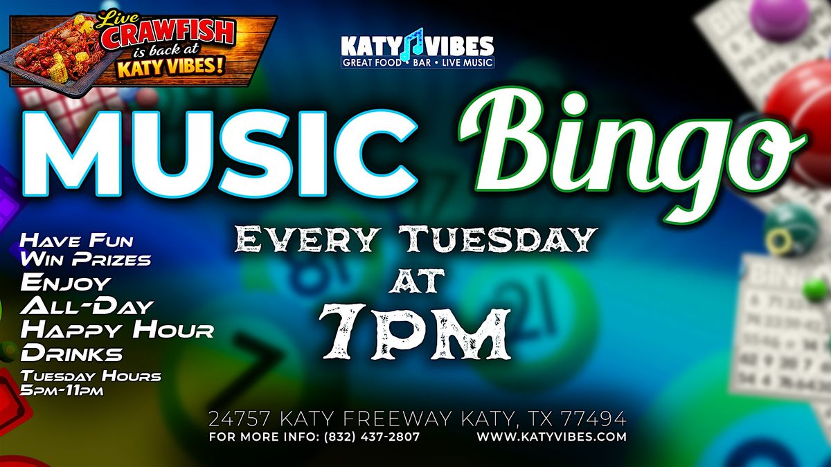 🎶 Tuesdays hit different—Music Bingo starts every Tuesday at 7:00 PM at Katy Vibes, so bring your crew early! 🎉