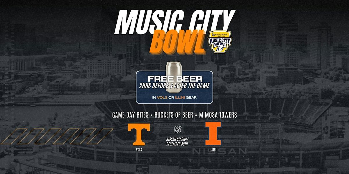 FREE BEER 2hrs before and after the game at Friends in Low Places in your VOLS or ILLINI gear 🍺