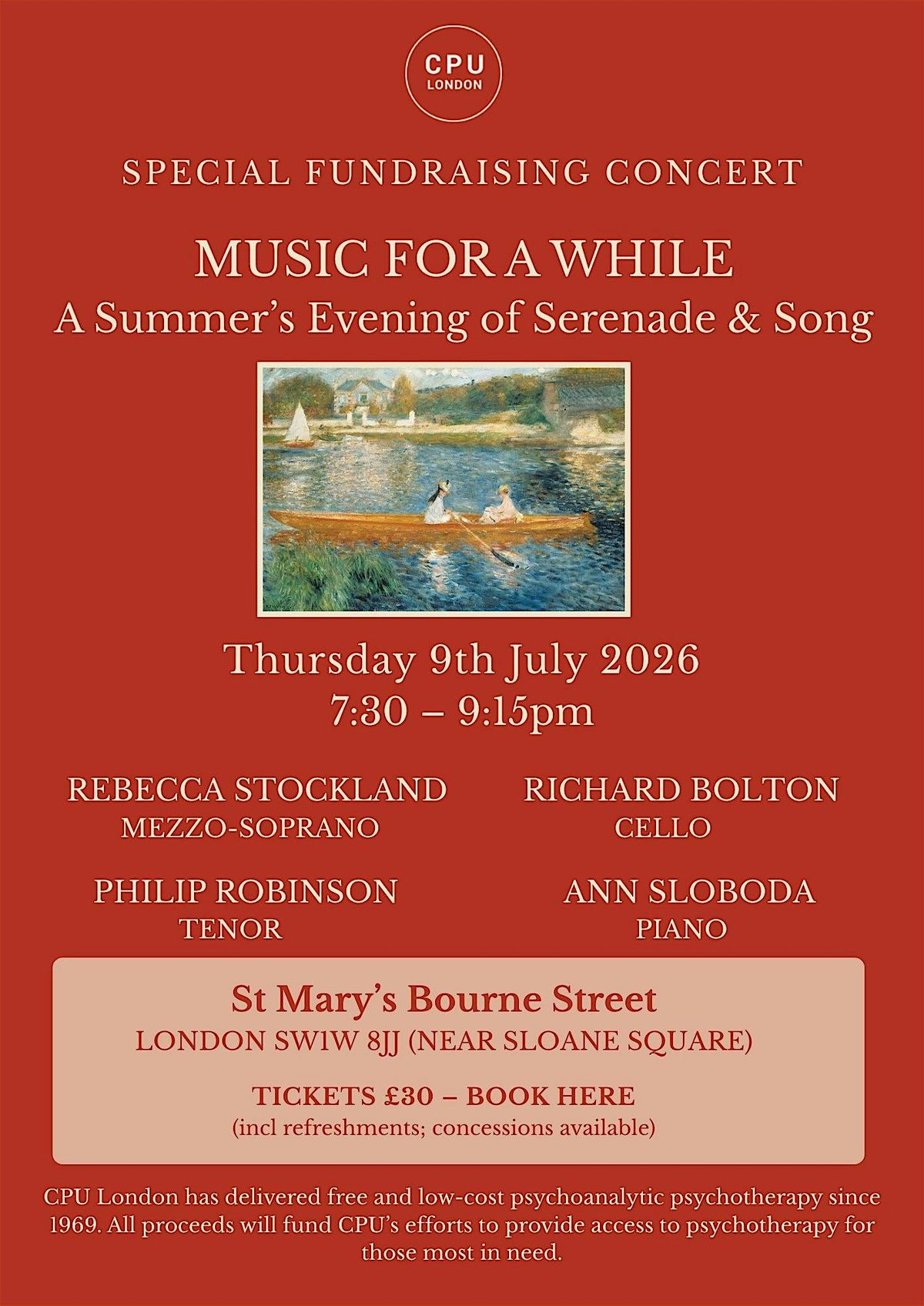 on Thursday, 9th July from 7:30 - 9:15pm at St Mary's Bourne Street, London (near Sloane Square)