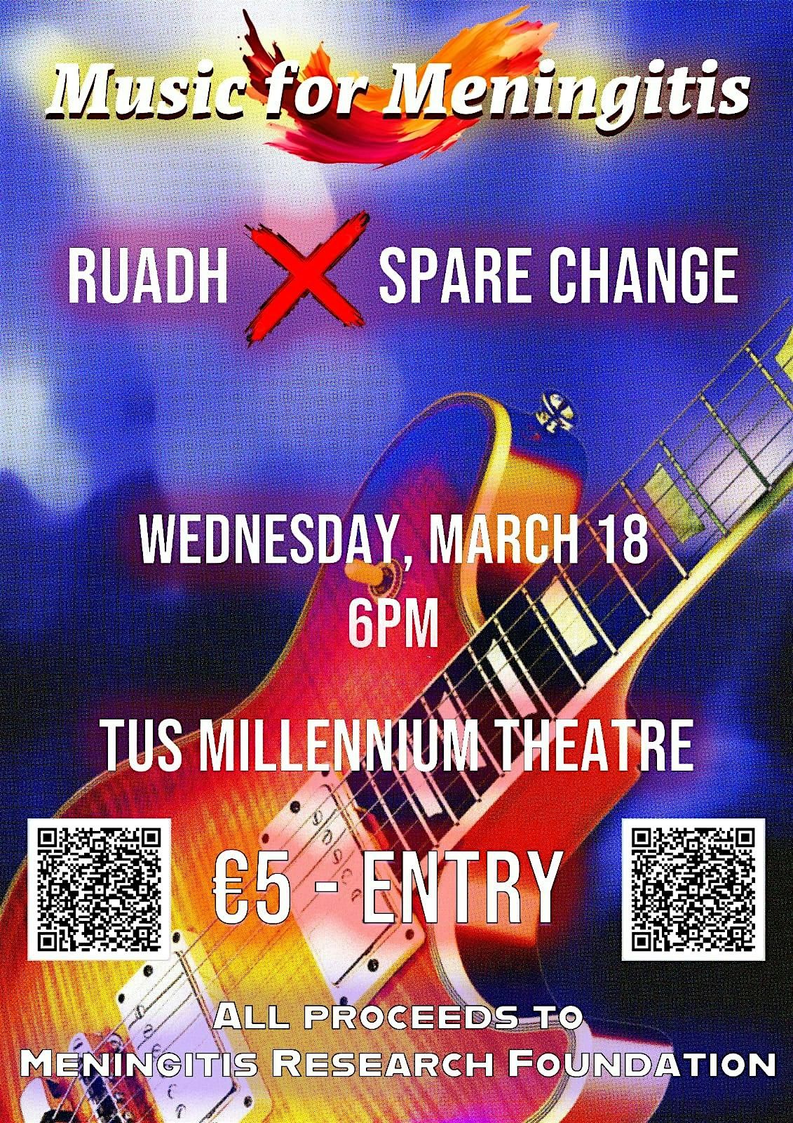 Join us at the TUS Millenium Theatre for an unforgettable evening with two powerful Limerick rock bands, Ruadh and Spare Change. With an excellent venue, two powerhouse bands and some great prizes being given away on the night, there's no better place to be the night after St Patrick's!