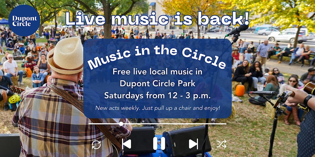 Music in the Circle, the crowd favorite free rotating weekly concert series in Dupont Circle Park, is BACK for 2026! Swing by Dupont Circle Park on Saturdays from 12 - 3 p.m. to catch amazing live local music for free! Different acts and genres play weekly. Featuring incredibly talented local acts that are sure to make you dance, stopping by Dupont Circle on Saturday afternoons is a must.