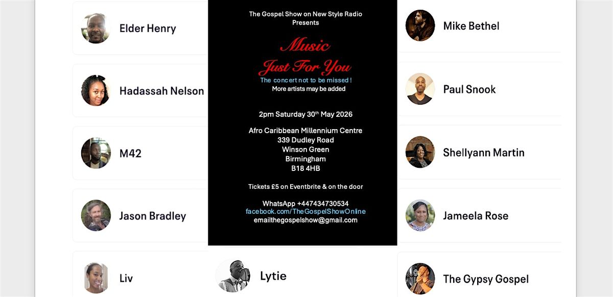 A concert not to be missed! Presented by The Gospel Show on New Style Radio.About this Event