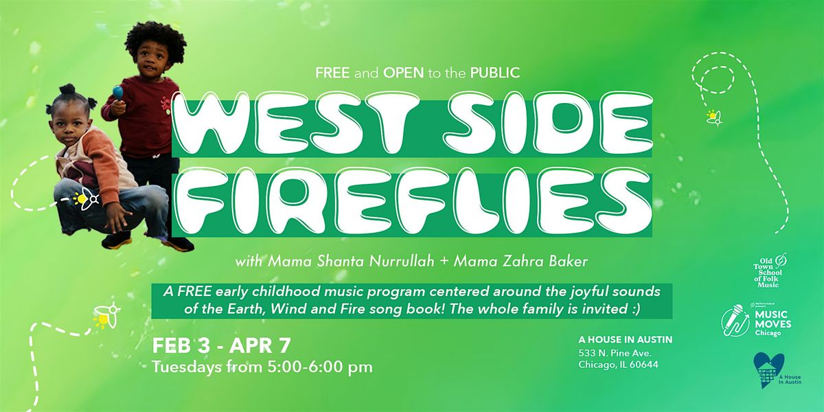 Join us weekly on Tuesdays for WEST Side Fireflies, a FREE early childhood music program that introduces toddlers and preschoolers to sound and play through the Earth, Wind, and Fire songbook. This Winter session features teaching artist Shanta Nurullah and Zahra Baker.