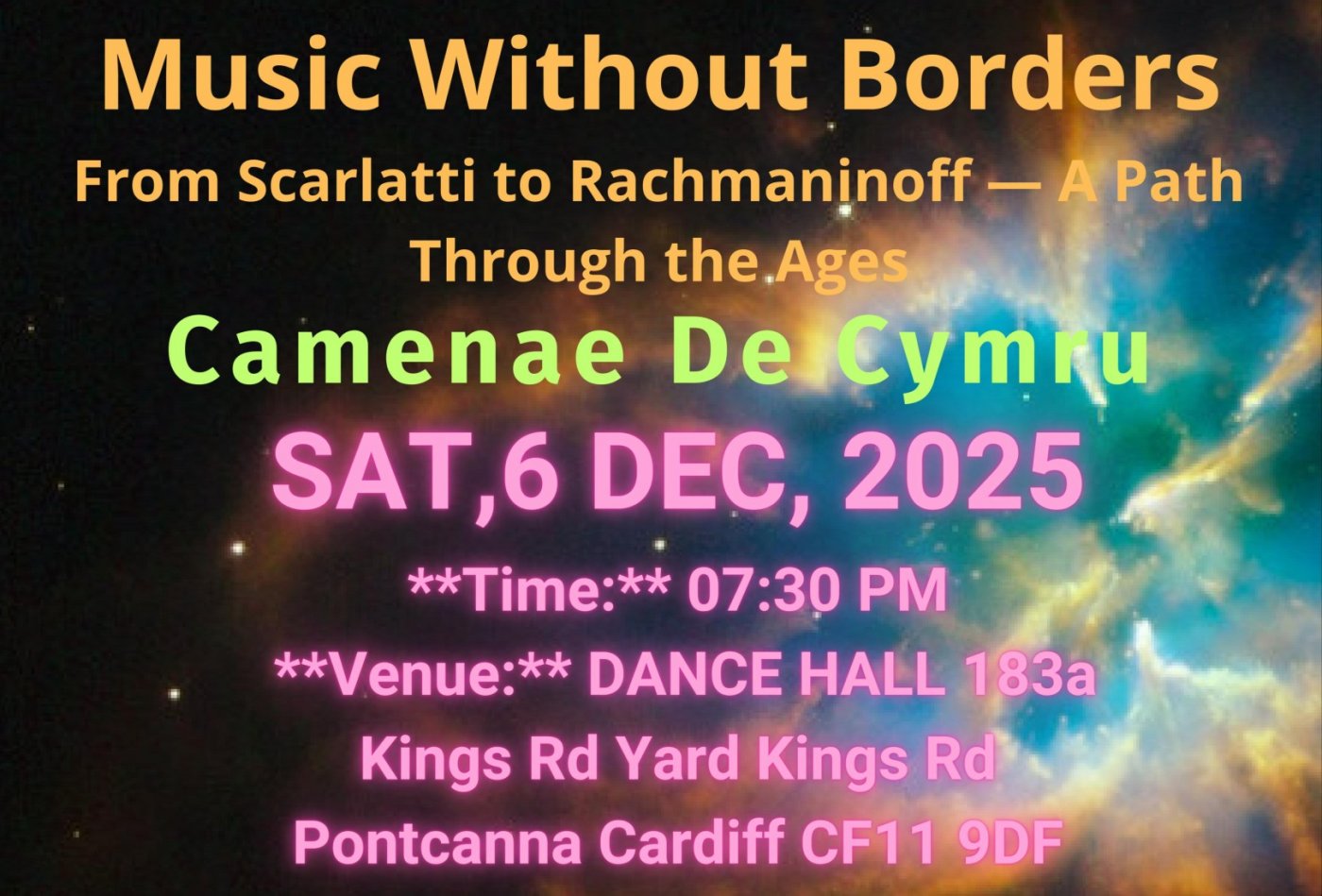 The Camenae were Roman water nymphs or deities of music poetry and healing. Their name relates to the Latin word ‘carmen’ which means ‘charm song poem magical formula or prayer’. The ensemble was founded in 2020 by Kristina Bitina contralto from Latvia and Nichola Bojczuk poet and compère. Kristina came to Scotland in 2005 and moved to Wales in 2010. She has performed widly in Latvia around Europe Scotland England and Wales. Camenae de Cymru has delivered over 30 concerts with professional musicians playing classical music of different epochs and genres.