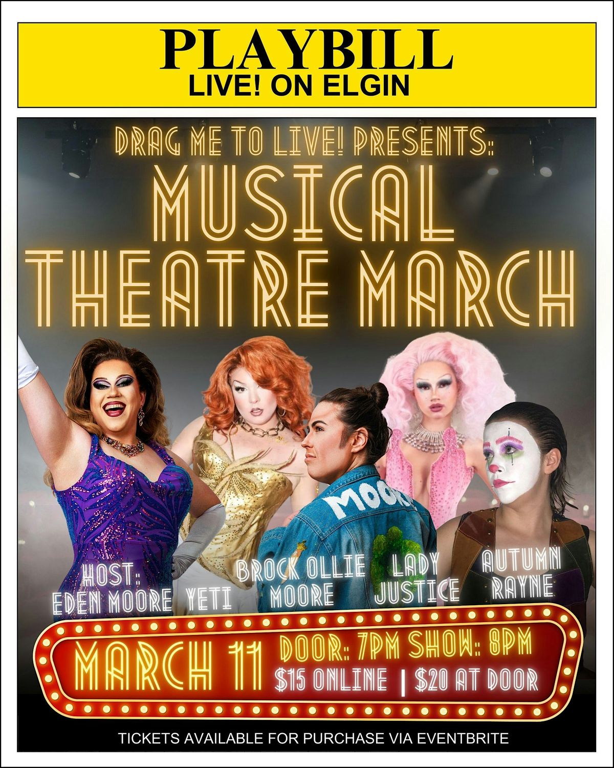 Drag Me To Live! is back for the 4th Annual "Musical Theatre March!" presented at Live! on Elgin!