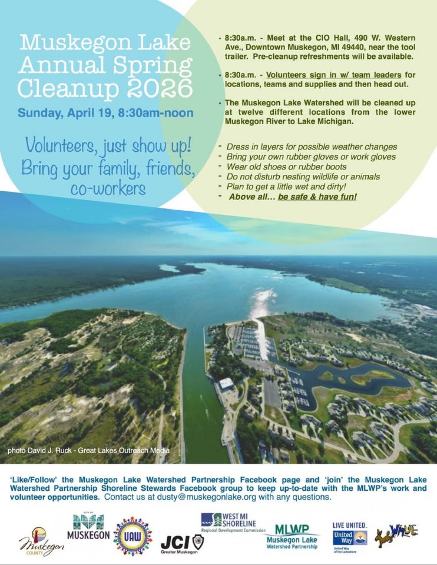 Volunteers are needed for the Muskegon Lake Annual Spring Cleanup! The cleanup is scheduled for Sunday, April 19th from 9am to noon. The Muskegon Lake Nature Preserve is one of 12 sites that will be a part of the cleanup.