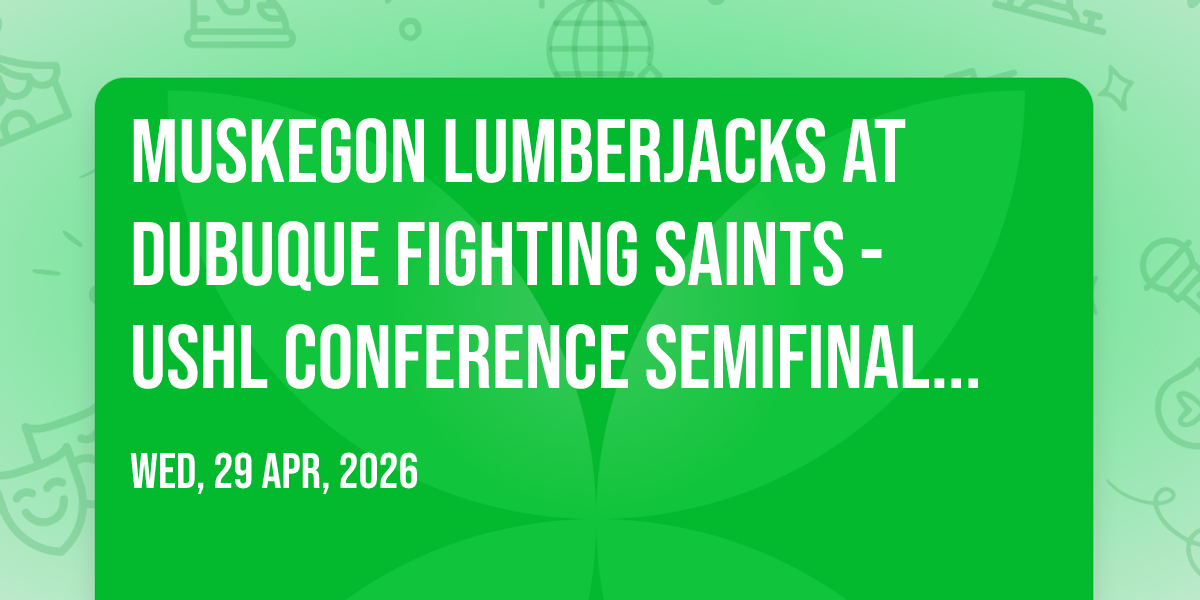 📍 Location: 42.513, -90.6482🌟 Step into a world of wonder at Muskegon Lumberjacks at Dubuque Fighting Saints - USHL Conference Semifinals (Game 5, Home Game 3), where extraordinary moments await! 🏛️ Located at ImOn Arena - Dubuque in dynamic Dubuque, IA, this event will become the talk of the town. 📅 Join us on April 29th, 2026 at 12:05 AM for a celebration that defies the ordinary. ✨ This curated experience brings together the best of entertainment, culture, and community spirit. Every detail has been thoughtfully planned to ensure an unforgettable experience for all our guests. 🎯 Take advantage of this opportunity to be part of something special. 🎊 Early registration is recommended as space is limited!