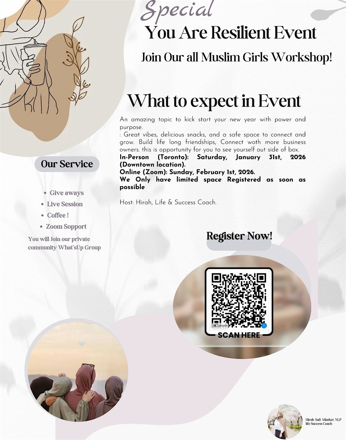 ambitious muslim women with mentorship, clarity, and community they need to confidently pursue entrepreneurship. we provide a nurturing and faith conscious space where like minded women can connect grow and elevate the mindset and tolls to build impactful purpose driven business. This is your place to shin and share about your experiance and hear from other well expeirnced female business owners. This club is all about transformational habits, mindsets and more. You will be guaide by well expeianced minset success coach. This is your new year. make connections , life long freindship, be part of authentic caring community who does care about your success.