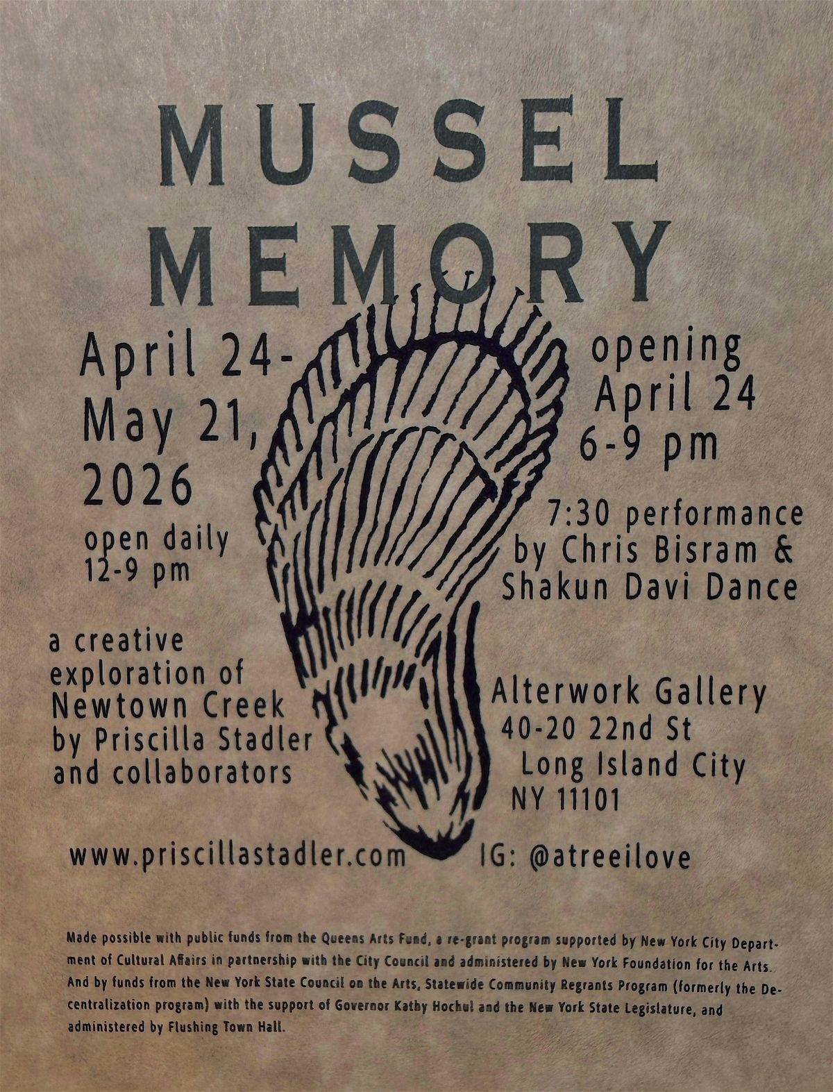 For MUSSEL MEMORY, her solo exhibition at AlterWork Gallery, Priscilla Stadler continues to investigate Newtown Creek, a contaminated river