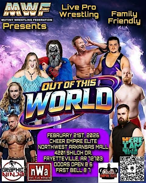 Wrestling fans join The Mutiny as we launch into the stratosphere! See your favorite MWF wrestlers up close! Get your tickets now, this show will be Out of this World!!