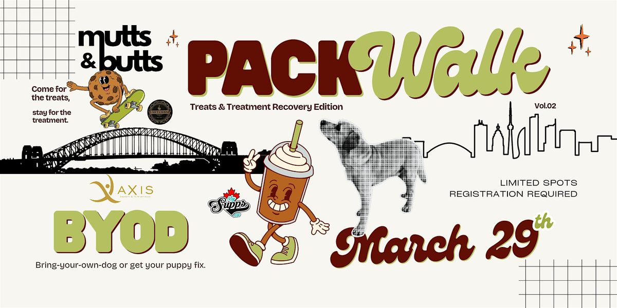 Meet us in Humber Bay Shores for a community pack walk for dogs and humans to regulate, connect, and reset. Enjoy local treats to fuel your morning from Metanoia Cafe and MySupplements.ca, followed by complimentary treatment at Axis Therapy - Mimico.