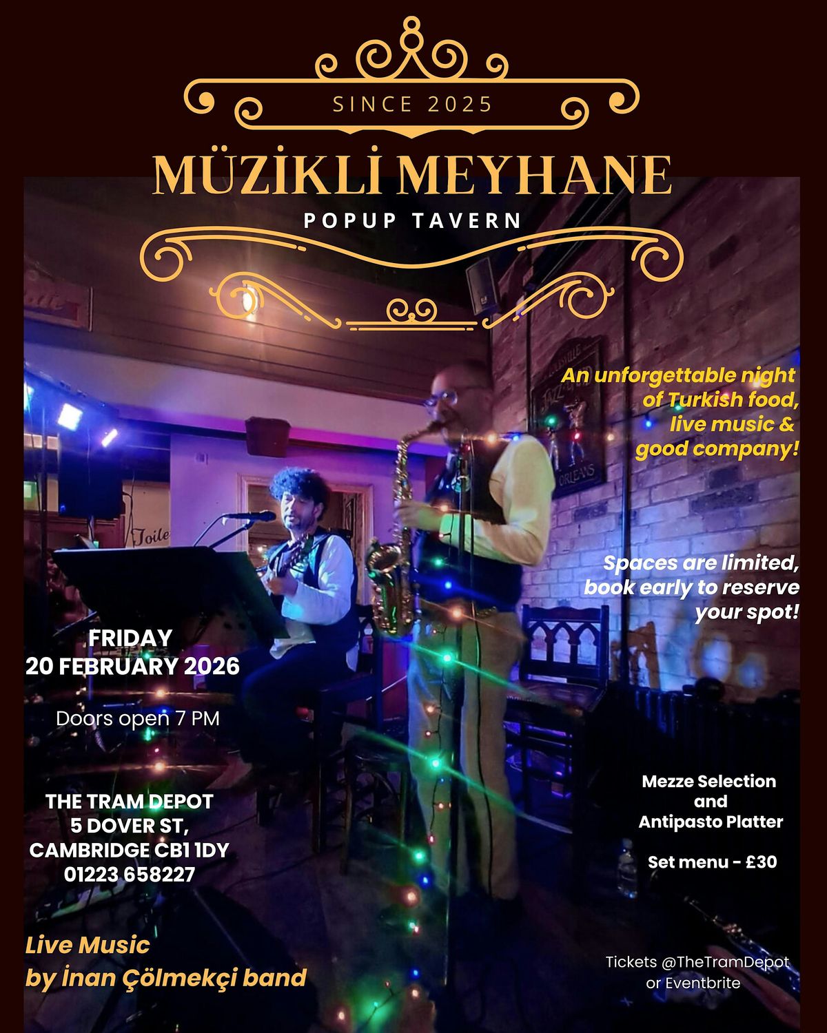 Müzikli Meyhane returns to The Tram Depot on 20 February! Join us for a night of live Turkish music, shared tables, and good vibes.