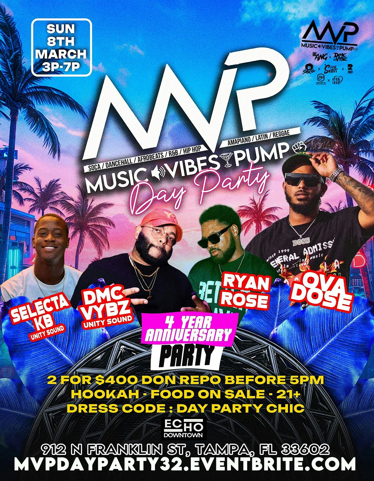 We missed our MVPs, and we are thrilled to announce MVP Day Party is making its grand return to Downtown Tampa on Sunday MARCH 8TH to celebrate our 4-Year Anniversary πΎπ β We are excited to welcome you back home to the one and only Caribbean Day Party, where the real culture lives π΄πβ€οΈ