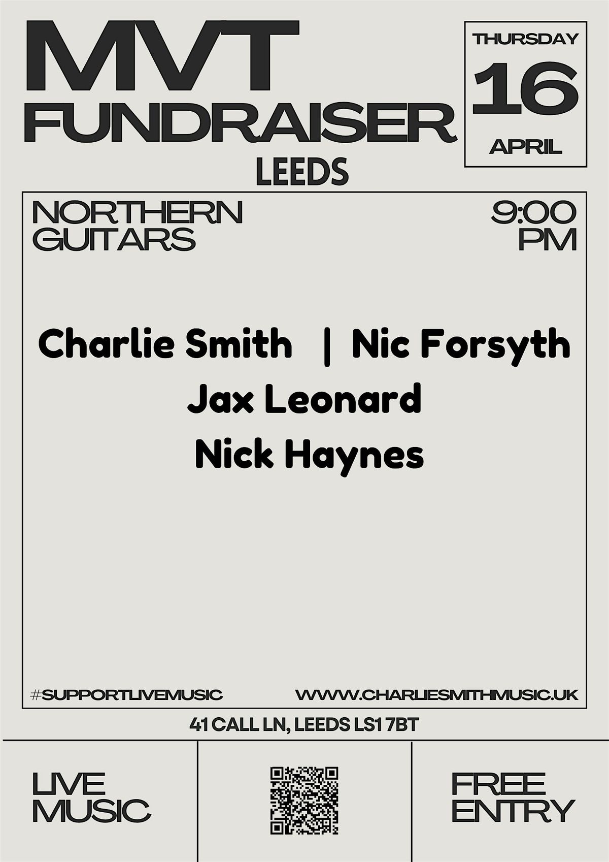 Hi, I'm Charlie Smith, an Alternative Acoustic artist from Hampshire, UK. In April, I will be embarking on my spring tour fundraising for the Music Venue Trust. This will include six different grassroots music venues around England.