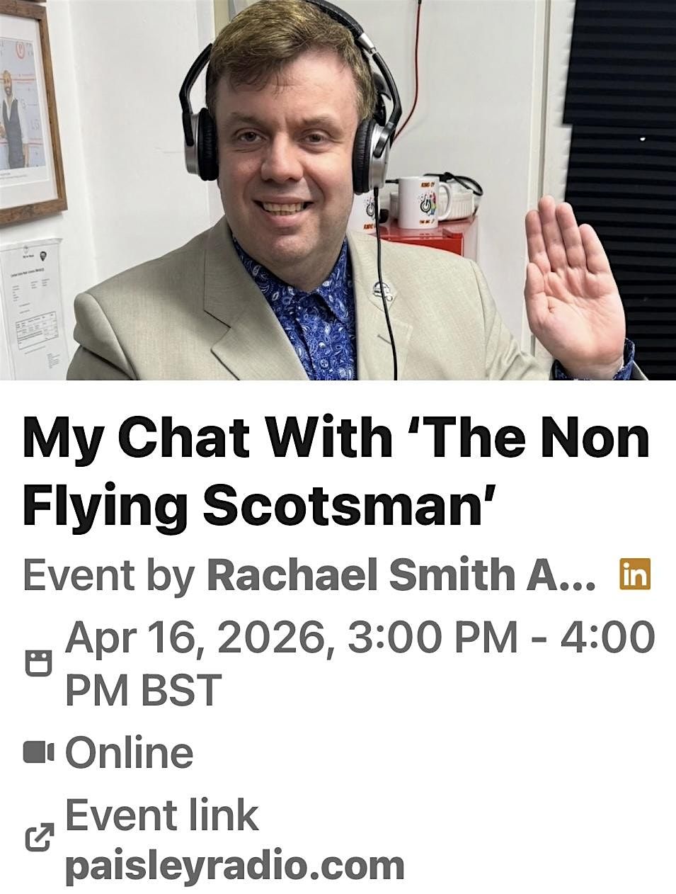 Join me online on paisleyradio.com on Thursday 16th April at 3pm to hear my lovely chat with food blogger and flight free traveller ‘The Non Flying Scotsman’