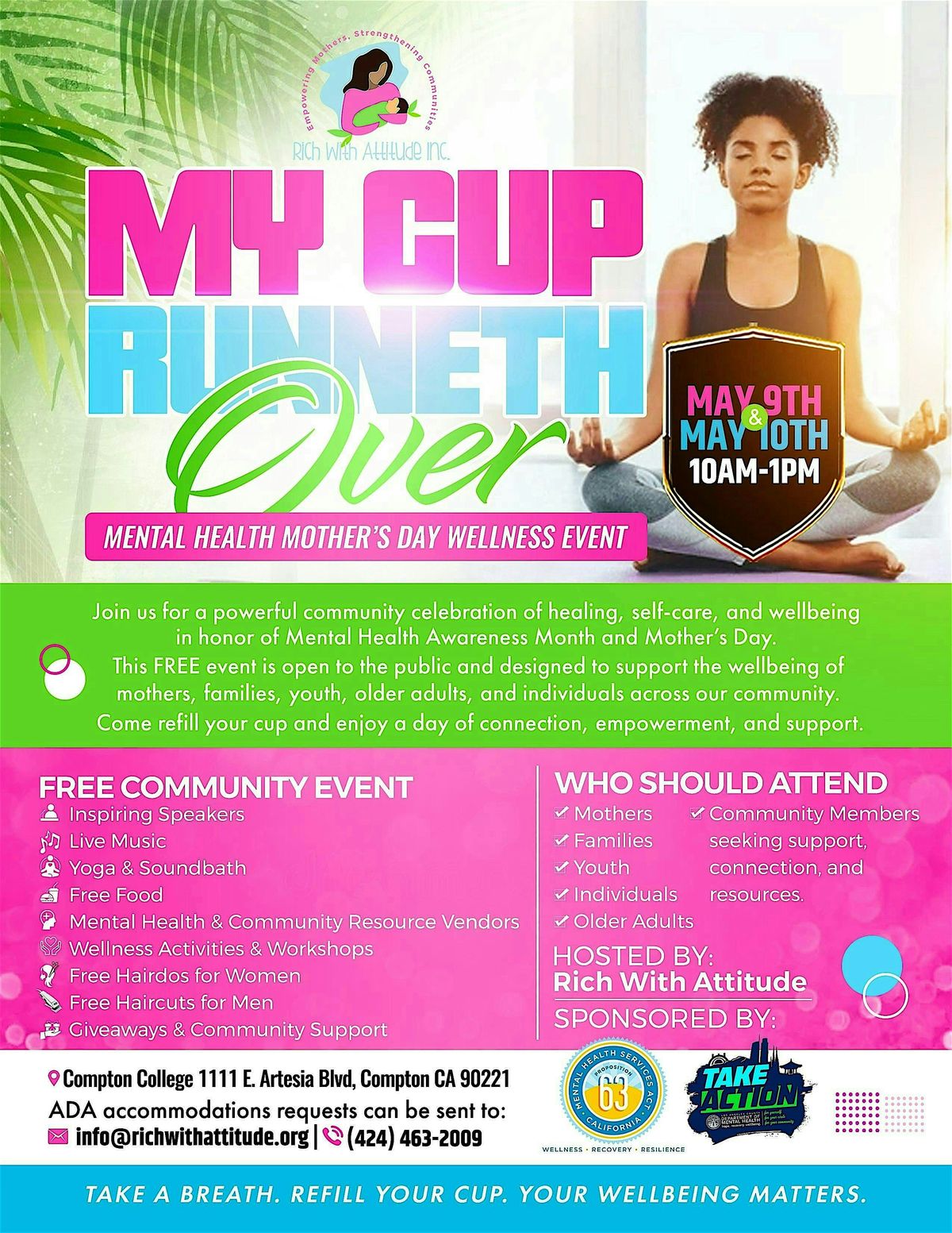 #MyCupRunnethOver #MentalHealthAwareness #CommunityWellbeing #FreeEventLA #ComptonEvents #MothersDayWeekend #RichWithAttitude