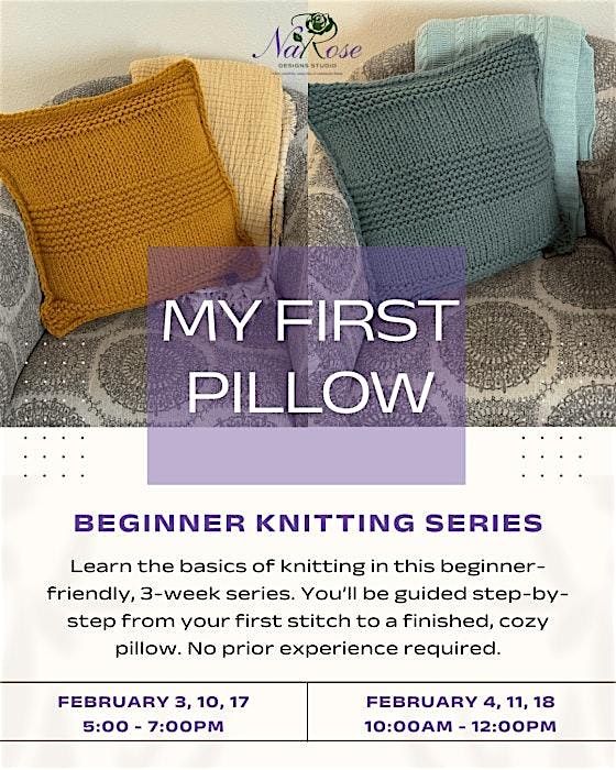 Learn the essentials of knitting in this cozy, beginner-friendly 3-week series. We will explore how to cast on, knit, purl, and combine stitch to complete a cozy pillow from start to finish. Each session builds on the last, helping you grow at a comfortable pace with plenty of support.