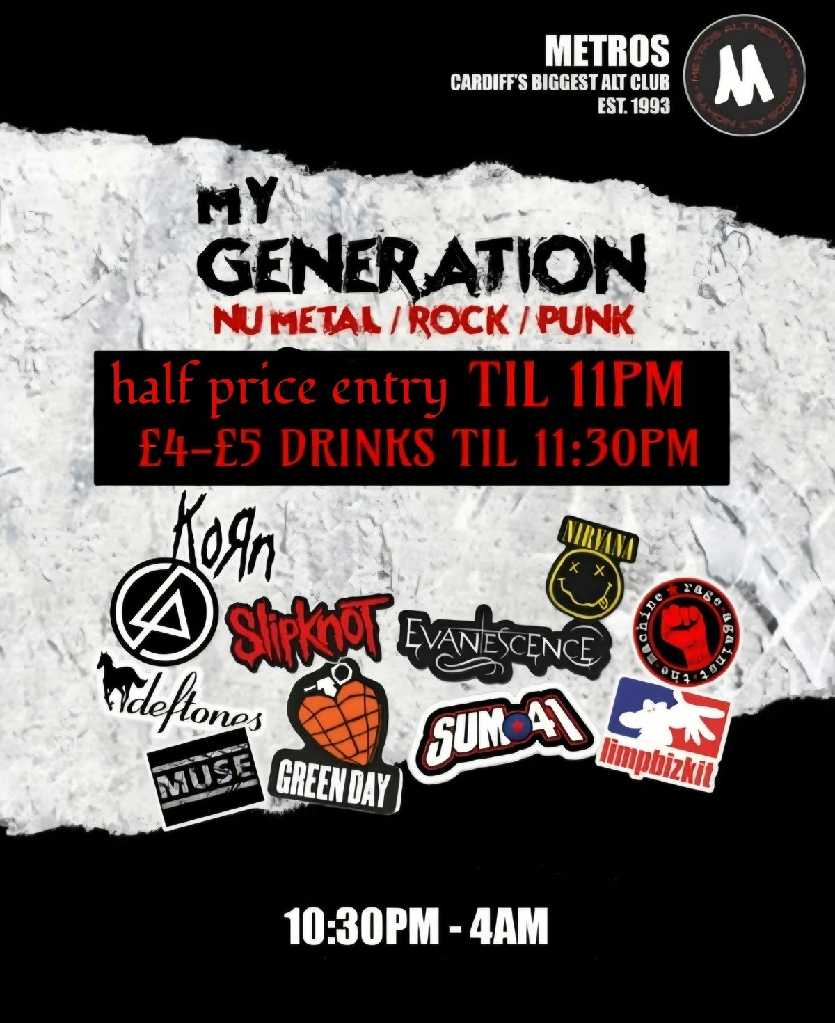 A night of classic 90's & 00's nu metal, rock & metal!Expect to hear all the classics from linkin park to muse, slipknot to sum 41 & system of a down to the offspring!£4/£5 Drinks deals til 11:30pm. Shots deals all night!Expect to hear: Linkin Park // Sum 41 // System Of A Down // Muse // Green Day // Slipknot // Limp Bizkit // Rage Against The Machine // Foo Fighters // Nirvana // Halestorm // Korn // Deftones & more