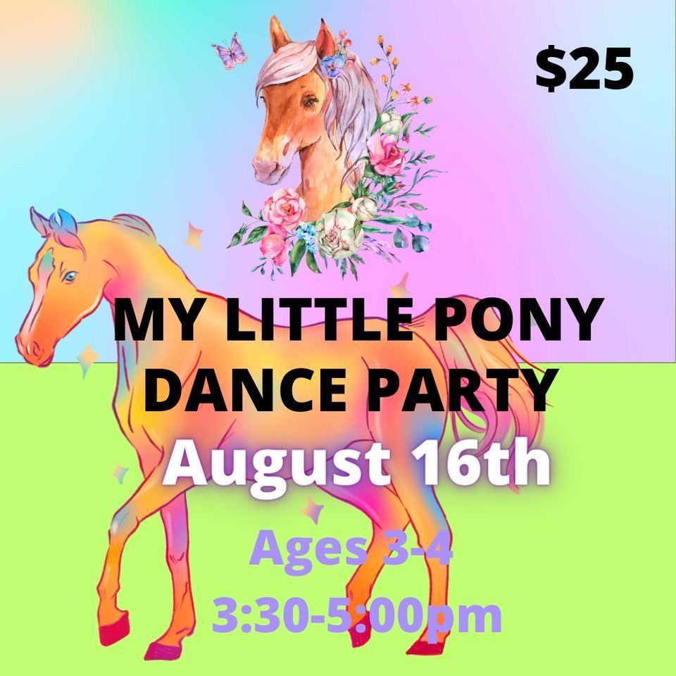 A My Little Pony themed dance class. Pop Up Party includes a themed Hip Hop dance class for 1 hour followed by a 30 minute themed craft for the dancers to make. Great kids activity with a one day commitment of fun.