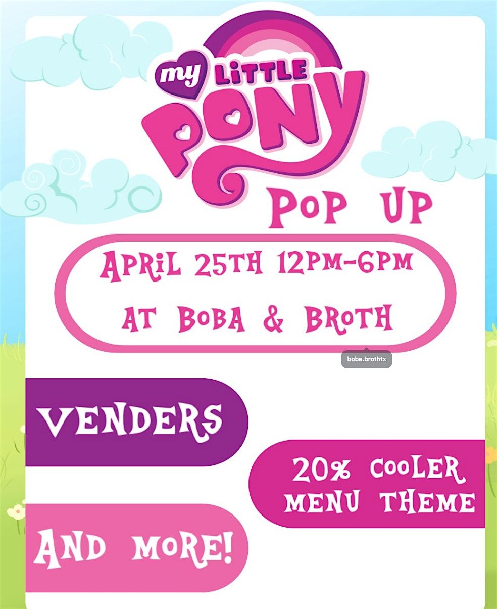 Join Us for a My little pony Pop-up April 25th at Boba and Broth in Sugar Land.About this Event