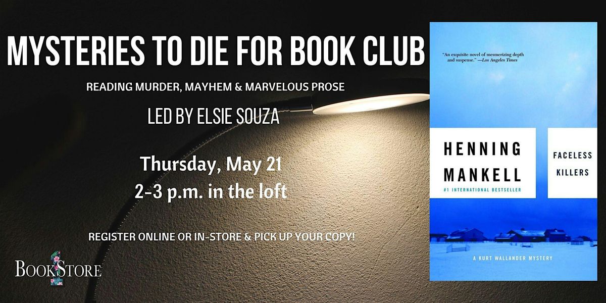We will meet in person at our store location at The Mark, 117 S. Pineapple Ave. The book club is $17, which includes a copy of Faceless Killers to be picked up at Bookstore1 any time before our meeting. Themed refreshments will be served!