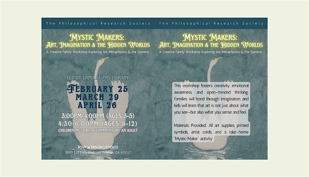 Materials Provided: All art supplies, printed symbols, artist cards, and a take-home “Mystic Maker” activity