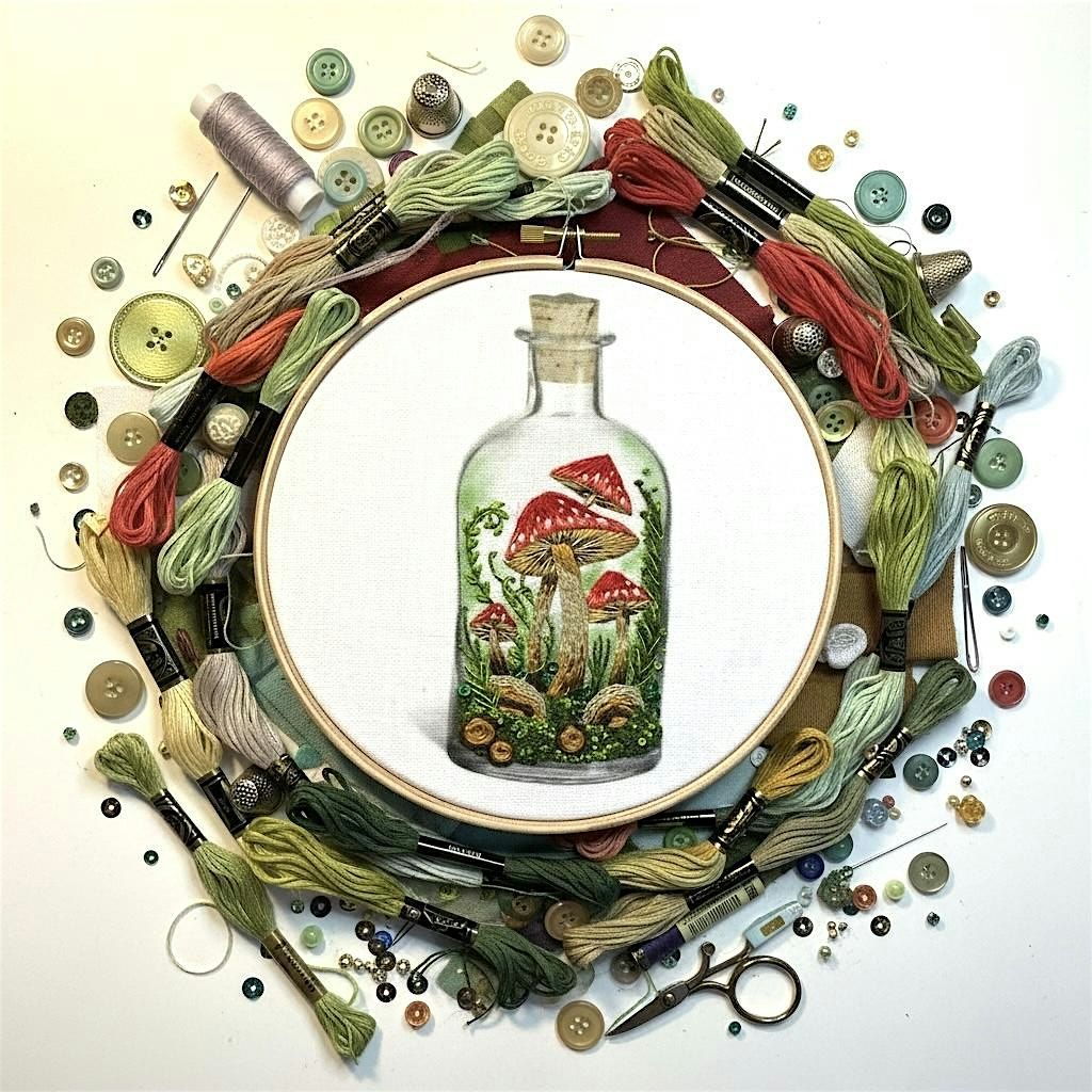 You'll be provided with all the materials and tuition to create your beautiful Mystical Mushrooms embroidery (with access to the bar to relax while you do it!) all you need to bring is your imagination!