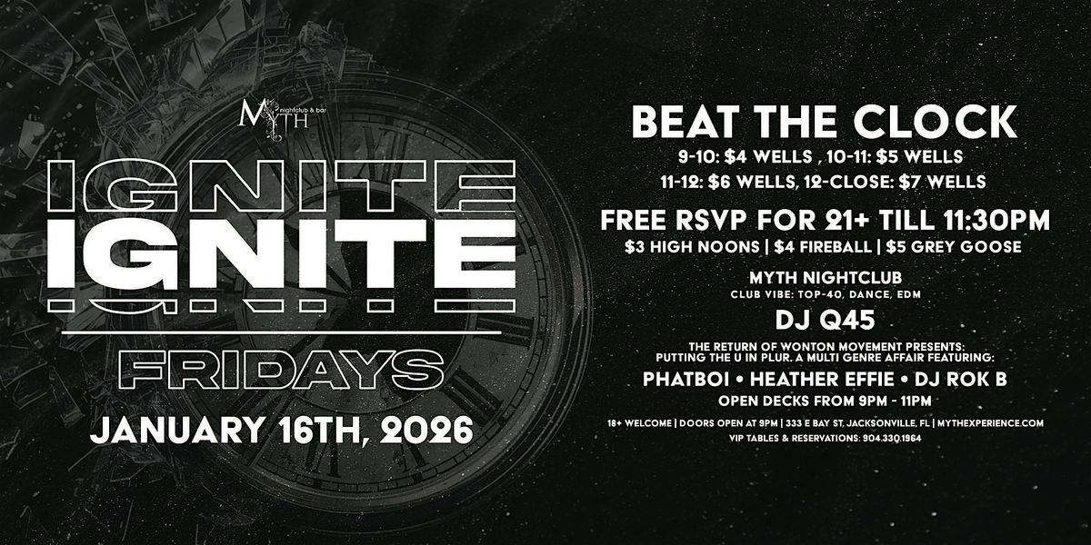 Ignite Fridays returns to Myth Nightclub with a high-energy night built for the crowd that moves fast and parties harder. From early drink specials to late-night dance floors, this is your Friday destination.
