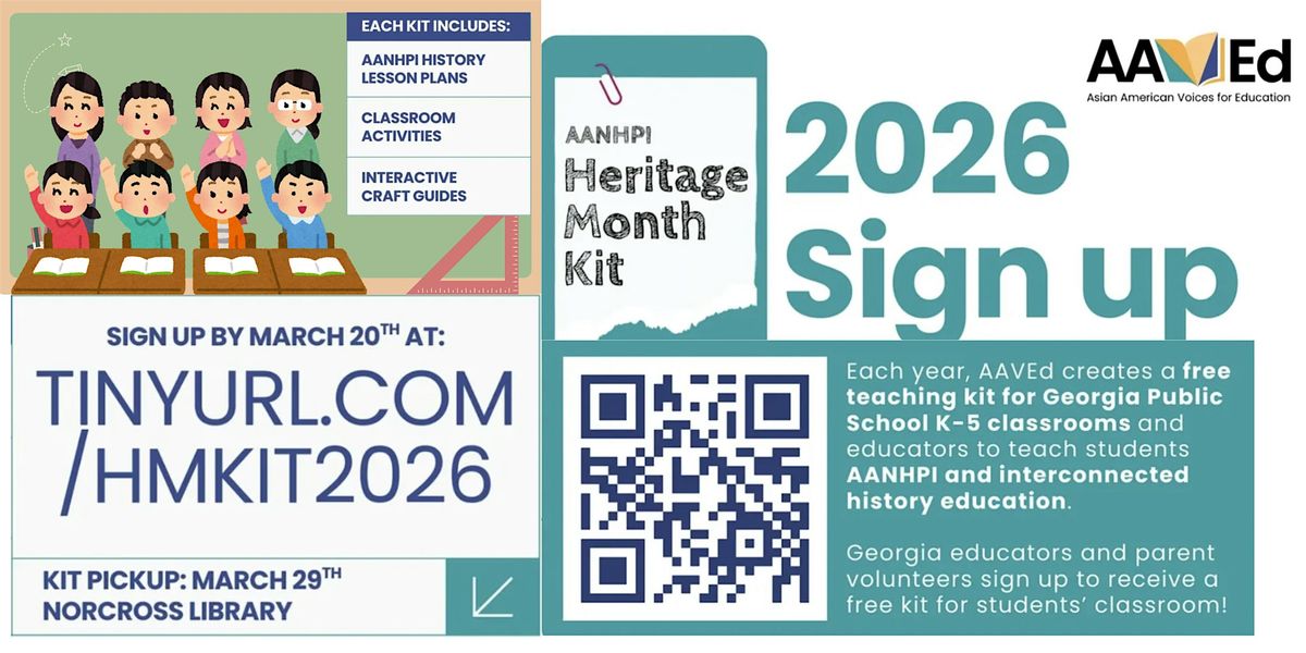 The NAAAP Atlanta and AAVeD 2026 Heritage Month Kit Assembly and Pick Up Day is being held on Sunday, March 29th from 8am - 7pm at the Norcross Library (5735 Buford Highway, Norcross, GA 30071).
