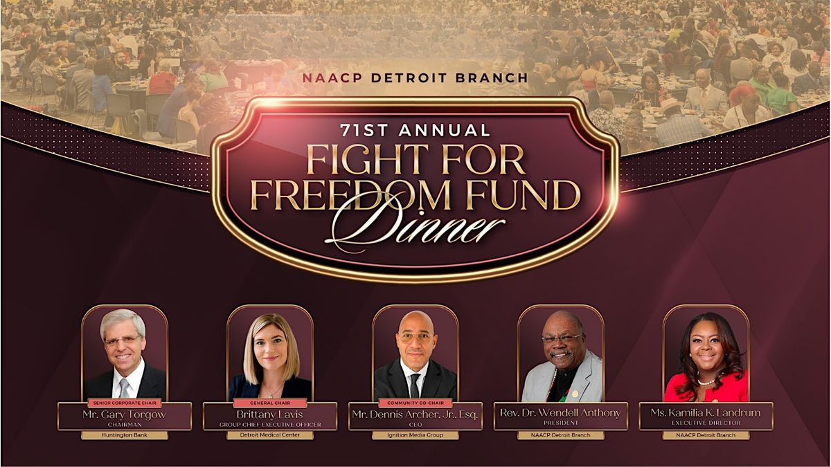 Are you ready for an unforgettable evening filled with amazing food, top-notch entertainment, and inspiring keynote speakers? Look no further than the Detroit Branch NAACP's Annual Fight For Freedom Fund Dinner!