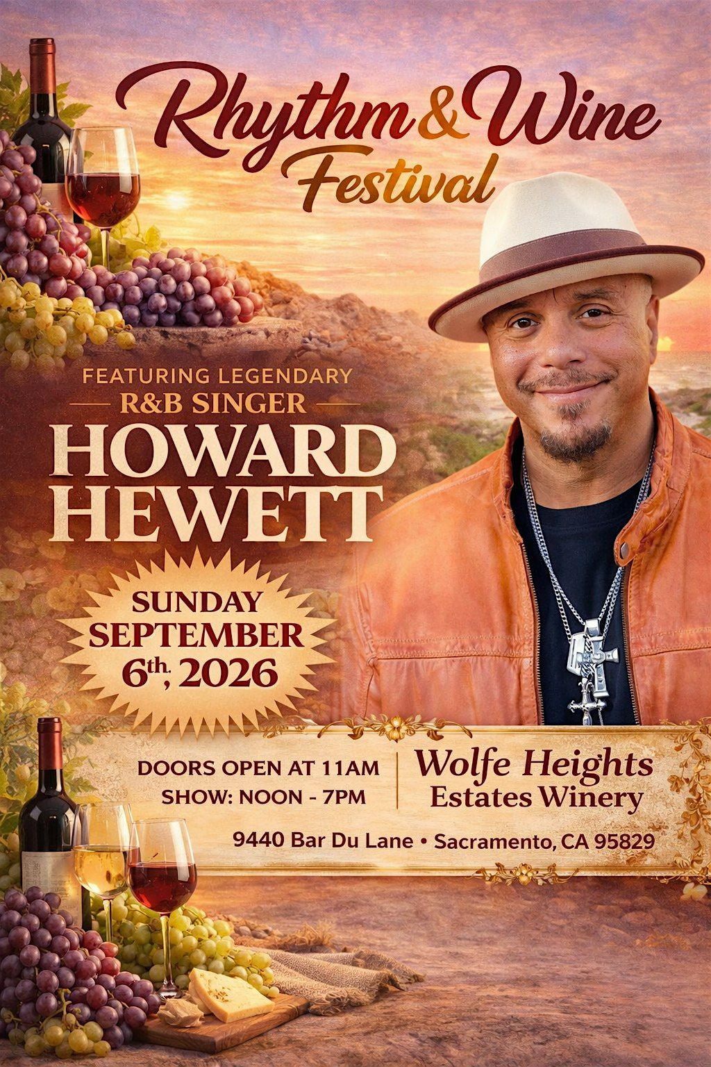 Get ready for an unforgettable in-person experience at the Rythmn & Wine Festiva, featuring R&B Legend Howard Hewettl! Enjoy great vibes, smooth beats, and amazing wine in an atmosphere made for fun and relaxation. Whether you're a music lover or a wine enthusiast, this event has something special for you. Grab your friends, bring your dancing shoes, and let's make some memories together!