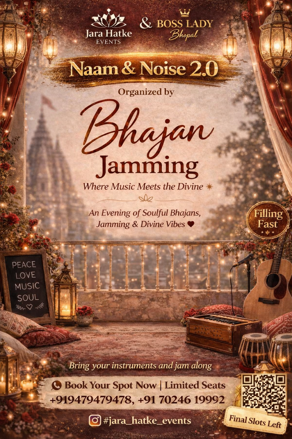 Get ready to immerse yourself in the soul-stirring melodies and vibrant vibes at Naam & Noise 2.0: Bhajan Jamming, presented by Jara Hatke Events & Boss Lady Bhopal.