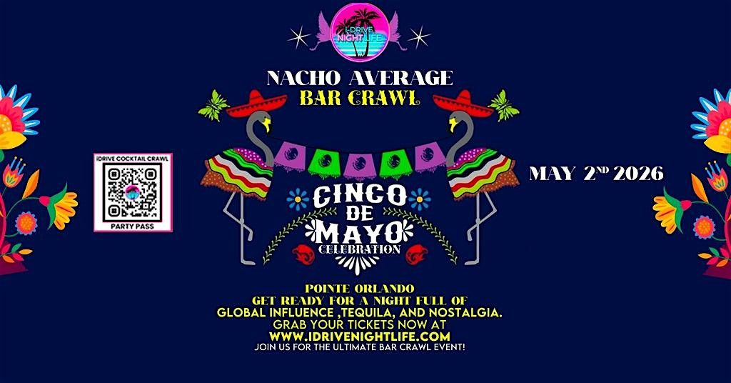 Info: Join us for the Nacho Average Bar Crawl our Cinco De Mayo Celebration at Pointe Orlando on International Drive, where you can explore multiple venues with ease and style! You'll receive your traffic light wristbandโyour ticket to a night filled with excitement and exclusive perks