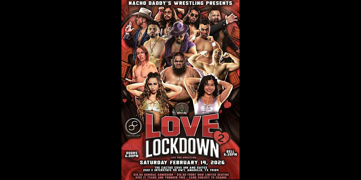 Grab all your lovers and witness a night of hard hitting, heart throbbing action as Nacho Daddys Wrestling comes back to Amarillo, Texas! See the return of your favorite stars and new faces this Valentines day! Tickets begin at $10 and kids 17 and under are free ( with purchase of general admission ticket). Doors open at 6 p.m. and belltime kicks off at 6:30p.m.!!