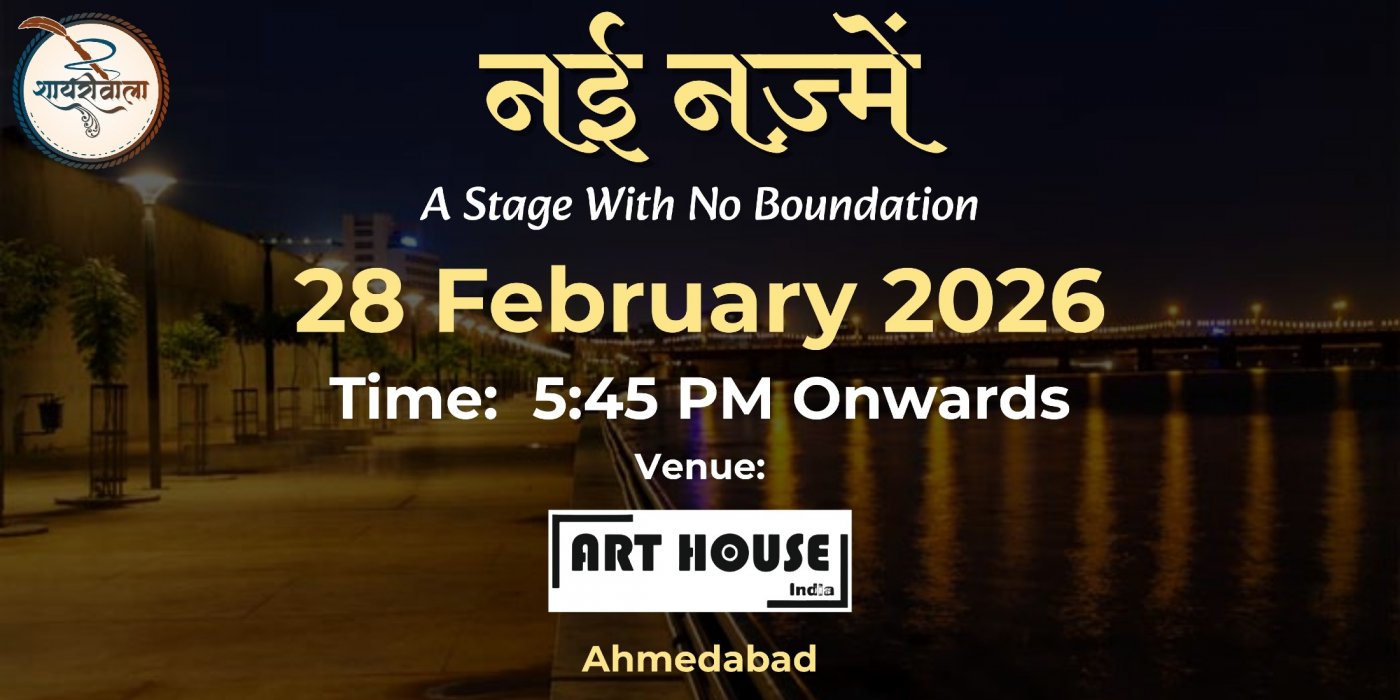 Nai Nazmein returns on Saturday, February 28, 2026, from 5:45 PM onwards at Art House India in Ahmedabad. This open-stage poetry evening celebrates fresh poetry, stories and many more. It is perfect for emerging poets and shayari lovers.
