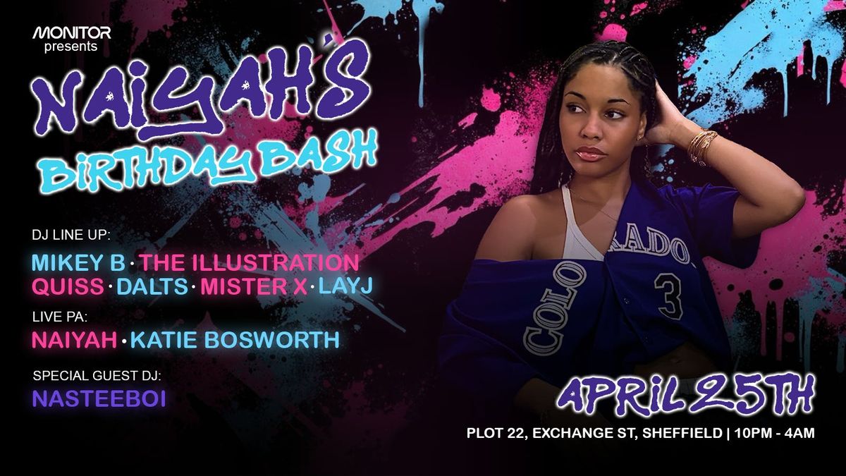 Naiyah takes over the Plot with a debut headline set to celebrate her 21st birthday with a six-hour rave featuring some very special guest DJs and performersFull lineup DJSMIKEY BTHE ILLUSTRATIONQUISSDALTSMISTER XLAYJSPECIAL GUESTNASTEE BOI