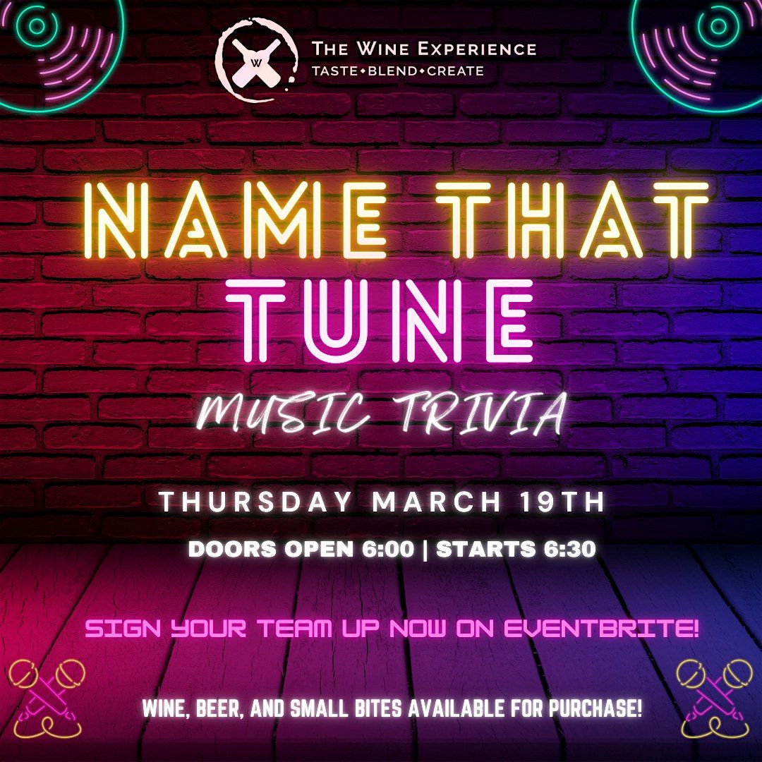 Get ready for a fun night at Wine Experience! Join us on March 19, 2026 at 6:30 PM (Pacific Time) for Name That Tune Trivia.