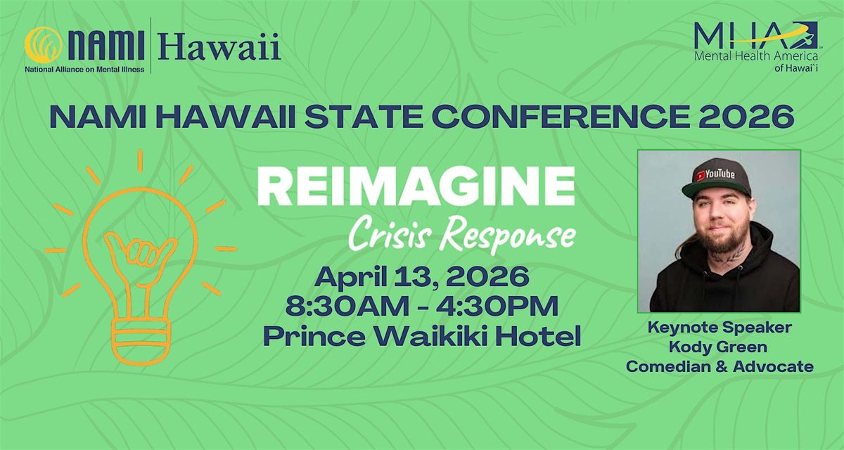 NAMI Hawaii State Conference in Partnership with Mental Health America of Hawaii, is a conference for mental health and behavioral health professionals, healthcare providers, law enforcement, public safety professionals, community and faith leaders, family members and peers in recovery and anyone else who is interested in improving outcomes for individuals in crisis and fostering partnerships between law enforcement, mental health professionals and the community.