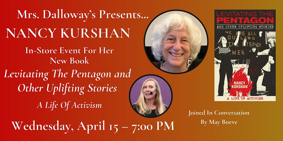 Join us at Mrs. Dalloway's on Wednesday, April 15 when Oakland author Nancy Kurshan comes to the store to share her new memoir Levitating the Pentagon and Other Uplifting Stories: A Life of Activism. Nancy will be joined by May Boeve for the conversation and will sign copies of her book after the presentation.