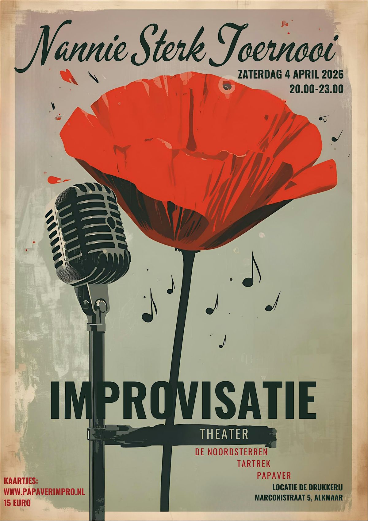 Improvisatieteams TarTrek (Haarlem), De Noordsterren (Leeuwarden) en Papaver (Alkmaar) nemen het tegen elkaar op in een vernieuwde competitie vol verrassingen. Uitdagende spelvormen en de ideeën van het publiek zorgen elke keer opnieuw voor unieke, verrassende scènes. Laat je meevoeren in scènes die ter plekke worden bedacht: van hilarisch tot ontroerend en alles daartussenin.